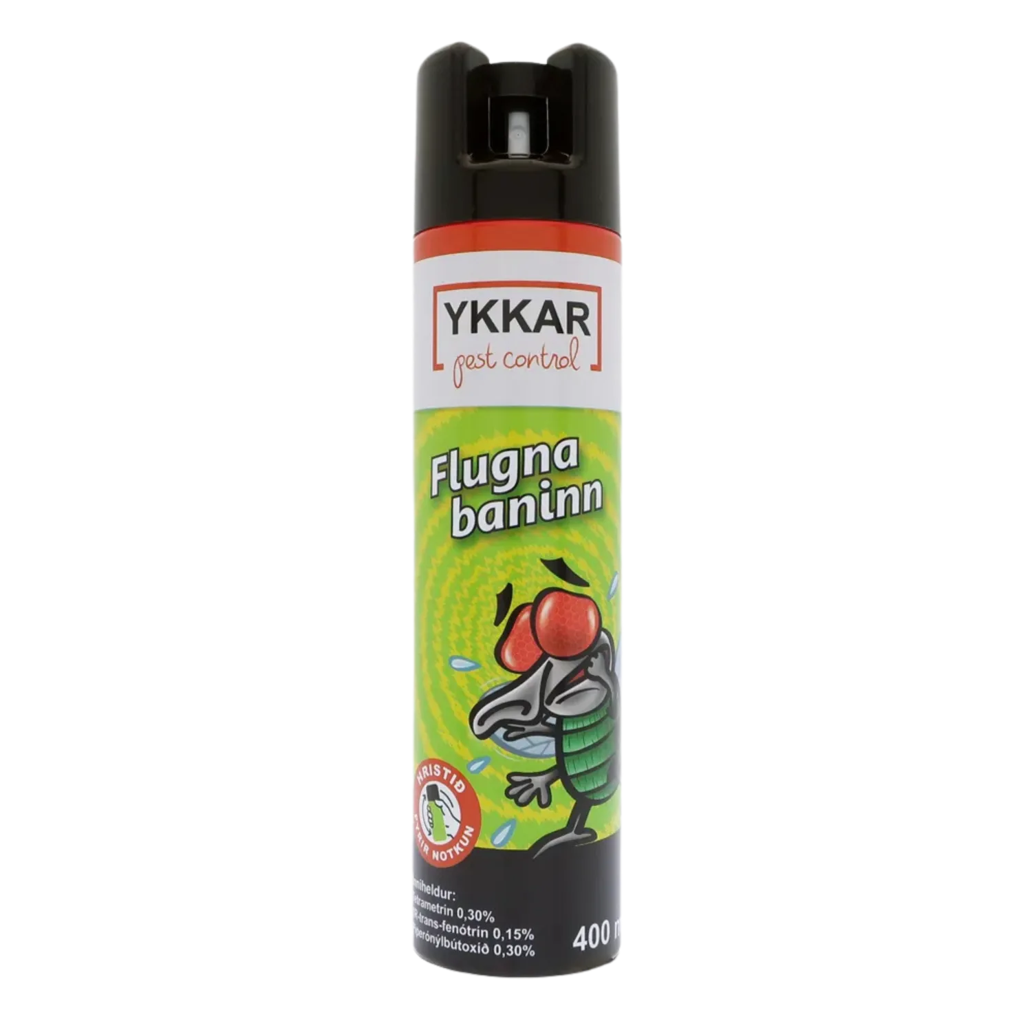 Flugnabaninn er kraftmikill úði í dós sem sérstaklega er hannaður til að útrýma flugum hratt og örugglega. Hann er tilvalinn til notkunar á heimilum, í sumarbústöðum og öðrum rýmum þar sem þörf er á skjótum og áhrifaríkum lausnum gegn skordýrum. Úðinn er einnig fjölnota og hentar til að losna við aðra skaðvalda á borð við geitunga, maura og köngulær. Með notkun Flugnabanans heldurðu rýminu þínu hreinu og lausu við óæskileg skordýr á einfaldan hátt.